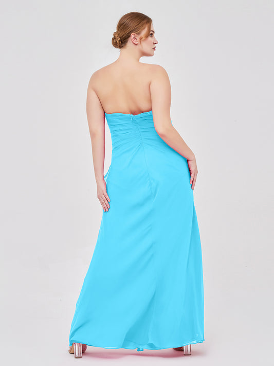 Babaroni GriseldaGriselda Sin Tirante Tubo Gasa Vestido Con Volantes Pavo Real Tallas Grandes