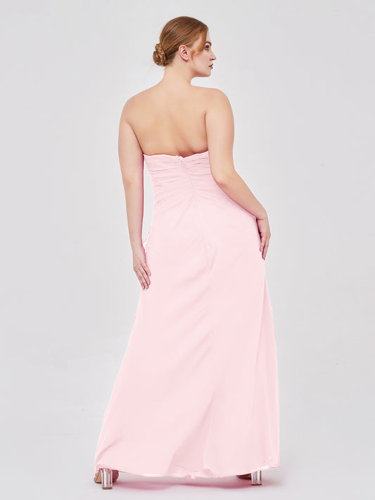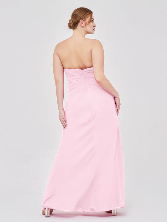 Babaroni GriseldaGriselda Sin Tirante Tubo Gasa Vestido Con Volantes Rosa Claro Tallas Grandes