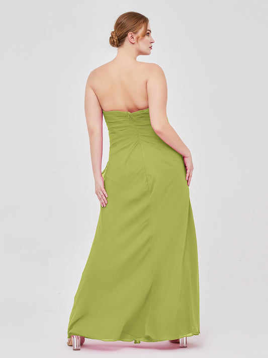 Babaroni GriseldaGriselda Sin Tirante Tubo Gasa Vestido Con Volantes Verde Oliva Tallas Grandes