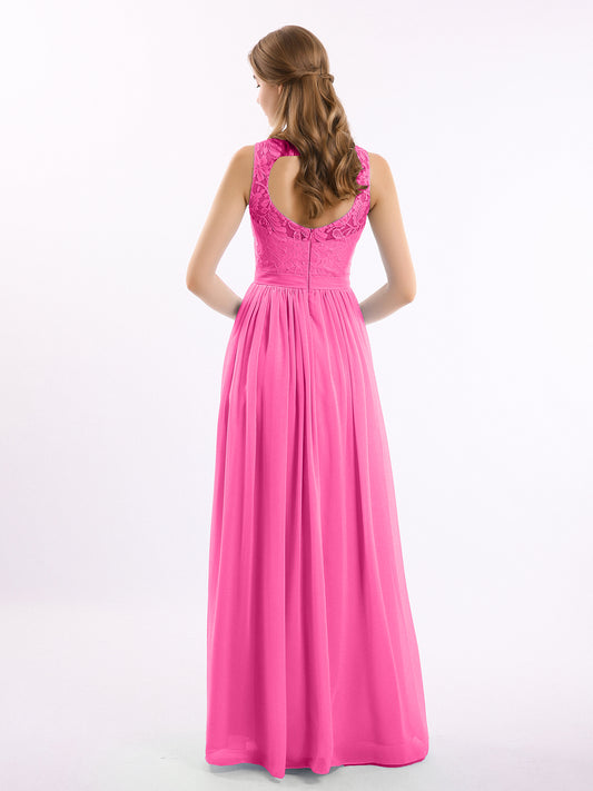 Babaroni GwendolynGwendolyn Encaje Y Gasa Largo Corte De Dama De Honor Azalea