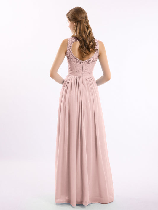 Babaroni GwendolynGwendolyn Encaje Y Gasa Largo Corte De Dama De Honor Rosa Polvoriento
