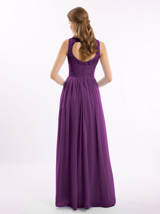 Babaroni GwendolynGwendolyn Encaje Y Gasa Largo Corte De Dama De Honor Uva