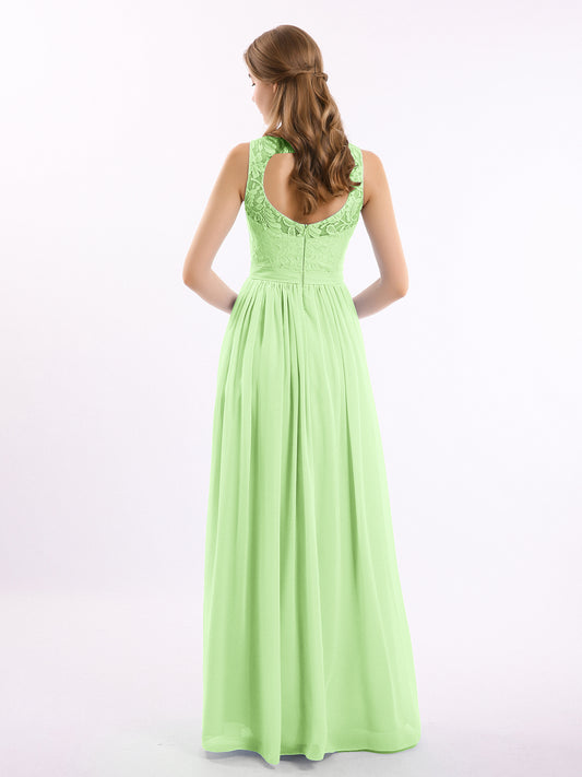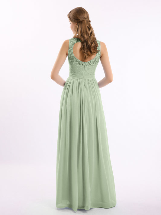 Babaroni GwendolynGwendolyn Encaje Y Gasa Largo Corte De Dama De Honor Salvia