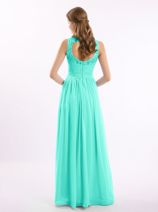 Babaroni GwendolynGwendolyn Encaje Y Gasa Largo Corte De Dama De Honor Turquesa