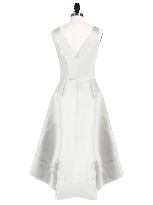 Babaroni HannahHannah Escote En V Saten Alto Bajo Vestidos De Dama De Honor Gris Acero