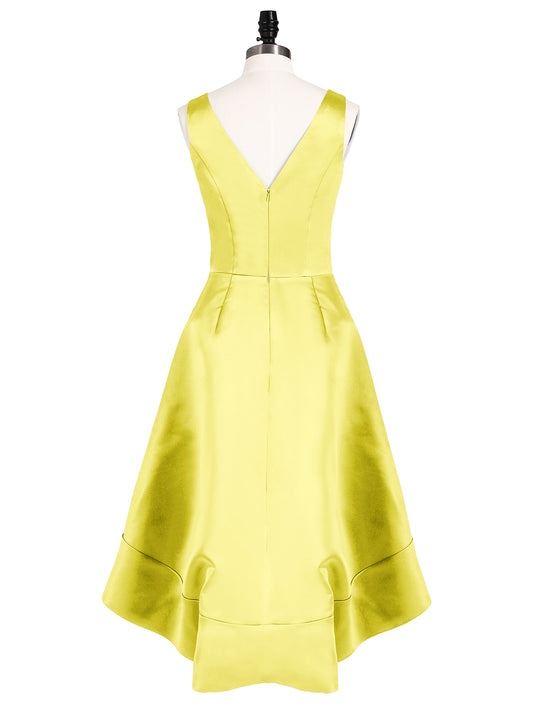 Babaroni HannahHannah Escote En V Saten Alto Bajo Vestidos De Dama De Honor Limón
