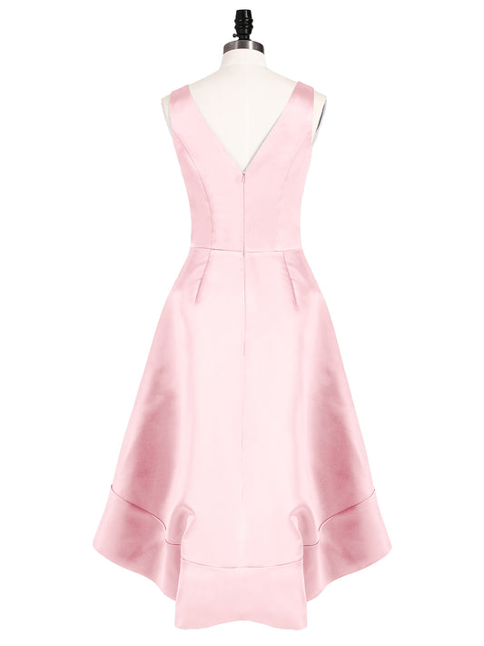 Babaroni HannahHannah Escote En V Saten Alto Bajo Vestidos De Dama De Honor Rosa Claro