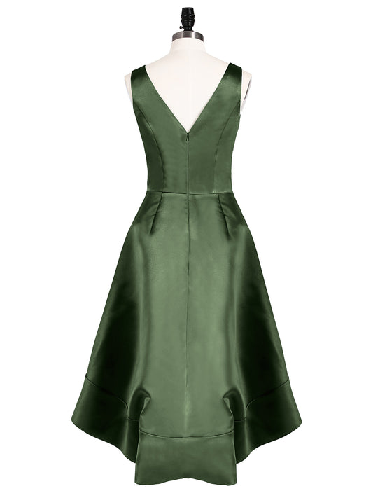 Babaroni HannahHannah Escote En V Saten Alto Bajo Vestidos De Dama De Honor Verde
