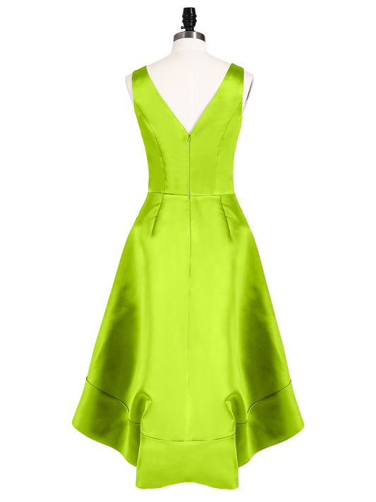 Babaroni HannahHannah Escote En V Saten Alto Bajo Vestidos De Dama De Honor Verde Lima
