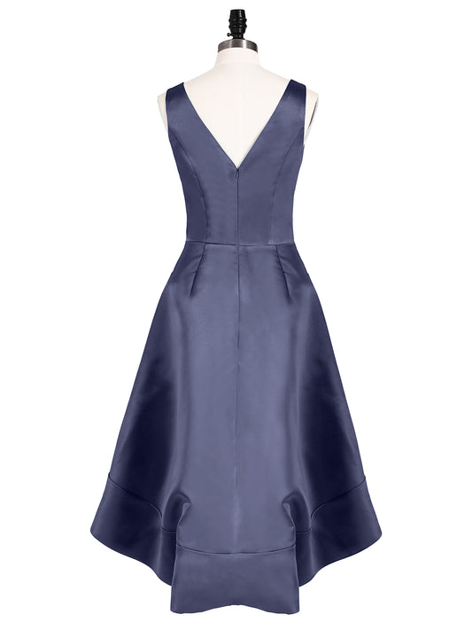 Babaroni HannahHannah Escote En V Saten Alto Bajo Vestidos De Dama De Honor Tormenta