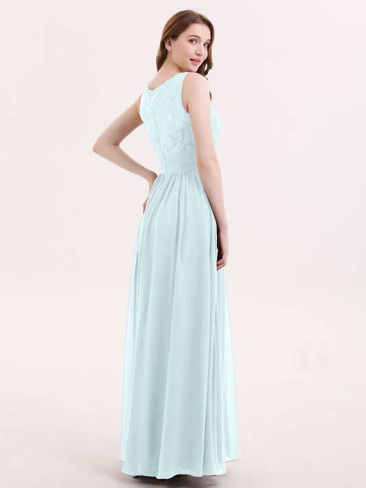 Babaroni AdalynAdalyn Escote En V Gasa Y Encaje Maxi Corte De Dama De Honor Regencia