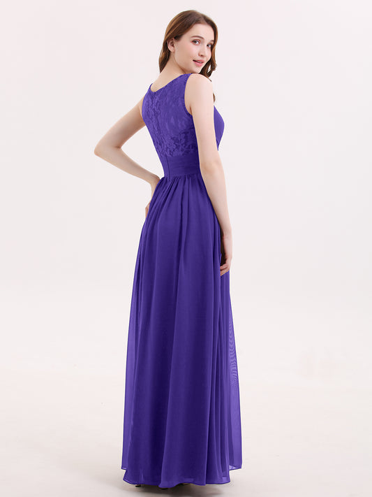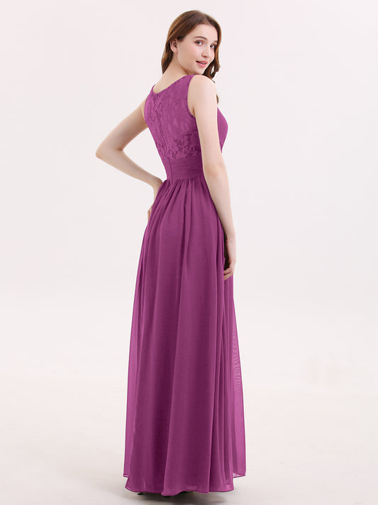 Babaroni AdalynAdalyn Escote En V Gasa Y Encaje Maxi Corte De Dama De Honor Orquídea