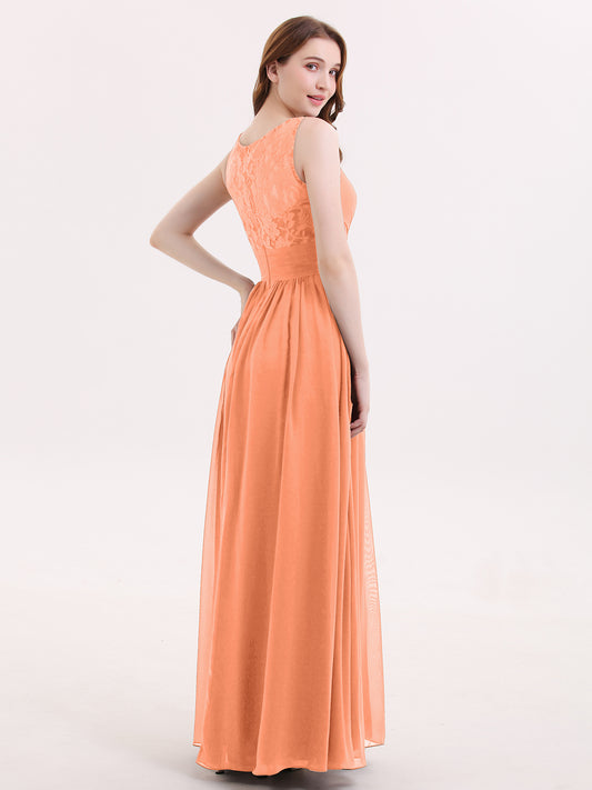 Babaroni AdalynAdalyn Escote En V Gasa Y Encaje Maxi Corte De Dama De Honor Papaya