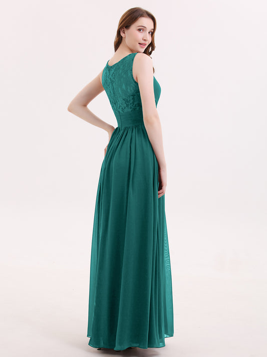 Babaroni AdalynAdalyn Escote En V Gasa Y Encaje Maxi Corte De Dama De Honor Pavo Real