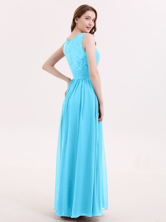 Babaroni AdalynAdalyn Escote En V Gasa Y Encaje Maxi Corte De Dama De Honor Piscina