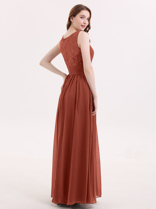 Babaroni AdalynAdalyn Escote En V Gasa Y Encaje Maxi Corte De Dama De Honor Óxido