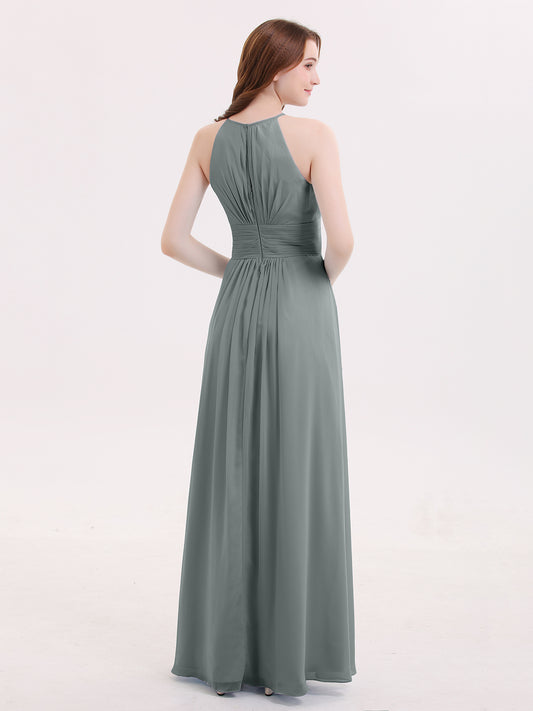 Babaroni IreneIrene Cabestro Largo Gasa Vestido Con Cintura Plisada Gris Acero Tallas Grandes