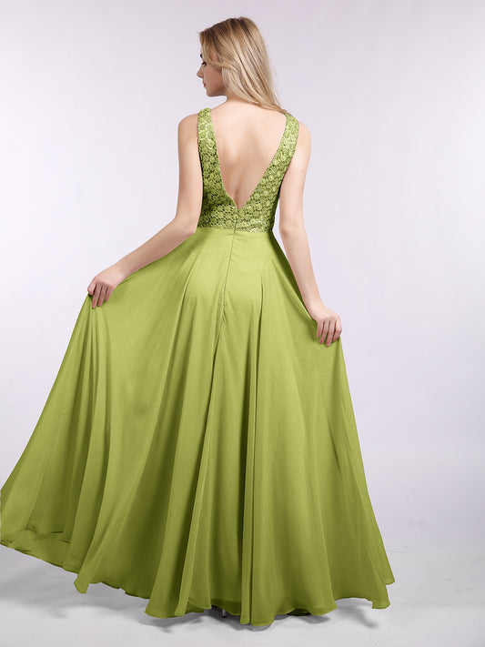 Babaroni IrisIris Encaje Corpino Gasa Falda Largo Corte Verde Lima