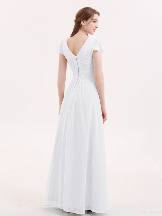 Babaroni JacquelineJacqueline Largo Gasa Vestido De Dama De Honor Con Mangas De La Tapa Blanco