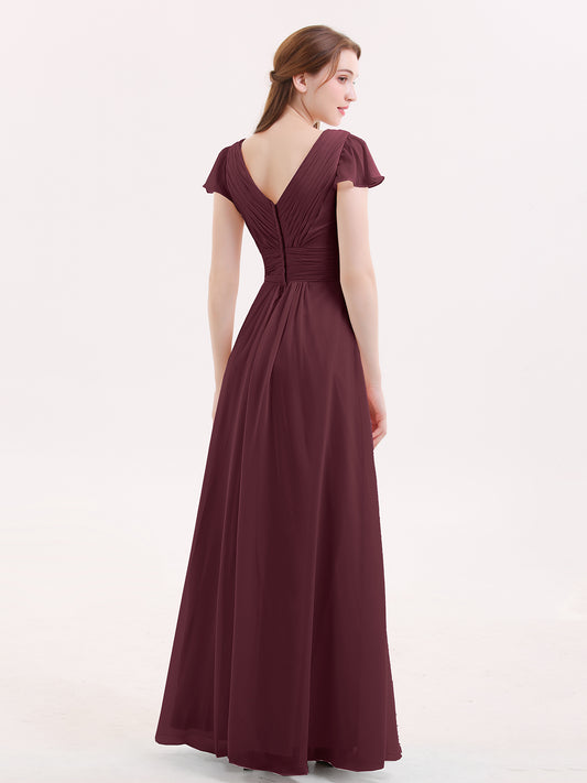 Babaroni JacquelineJacqueline Largo Gasa Vestido De Dama De Honor Con Mangas De La Tapa Cabernet