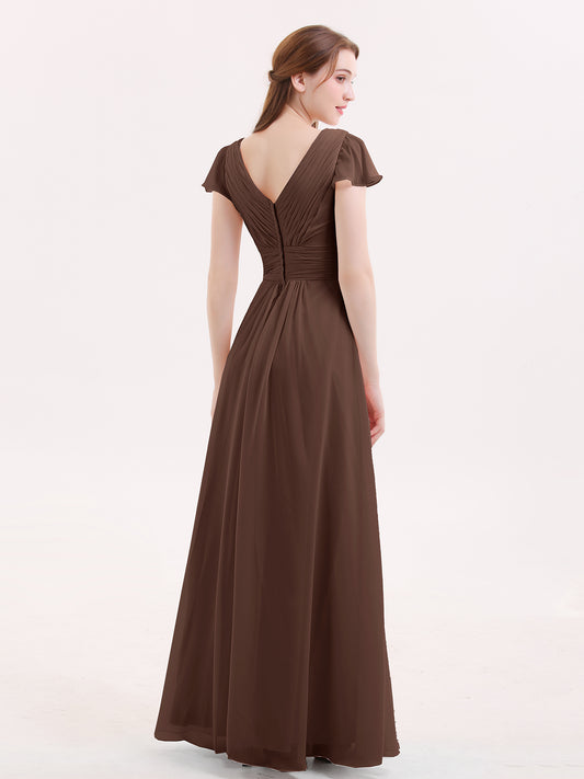 Babaroni JacquelineJacqueline Largo Gasa Vestido De Dama De Honor Con Mangas De La Tapa Chocolate