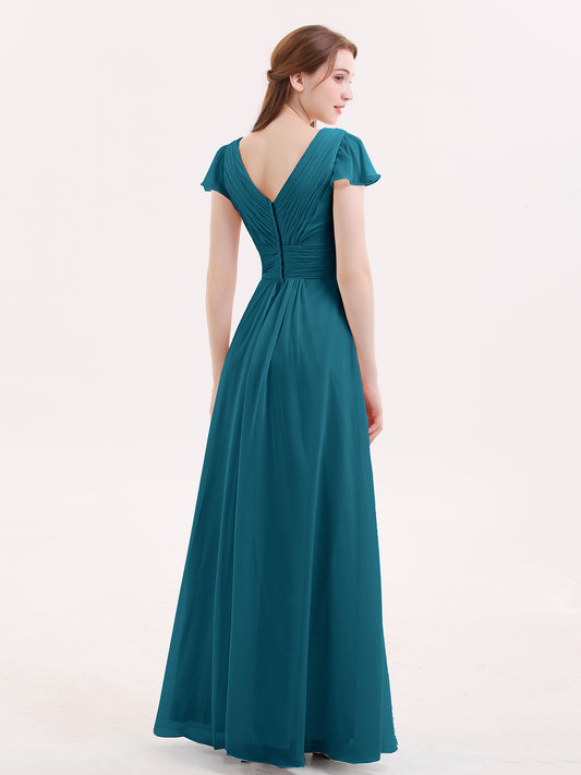 Babaroni JacquelineJacqueline Largo Gasa Vestido De Dama De Honor Con Mangas De La Tapa Coral