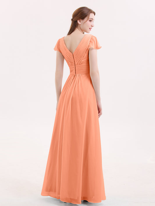 Babaroni JacquelineJacqueline Largo Gasa Vestido De Dama De Honor Con Mangas De La Tapa Melocotón