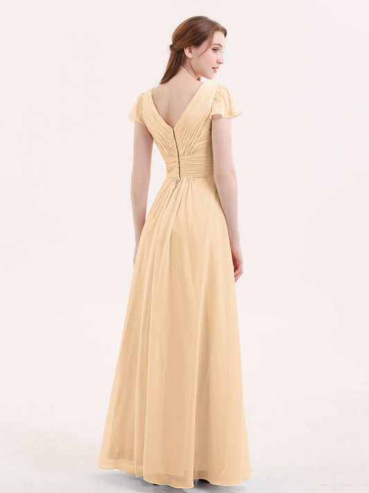 Babaroni JacquelineJacqueline Largo Gasa Vestido De Dama De Honor Con Mangas De La Tapa Oro Tallas Grandes