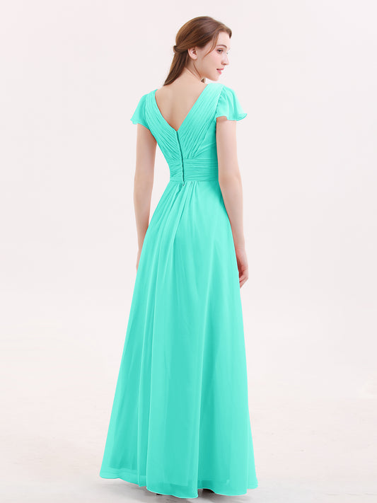 Babaroni JacquelineJacqueline Largo Gasa Vestido De Dama De Honor Con Mangas De La Tapa Turquesa