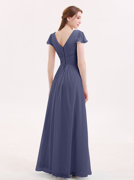 Babaroni JacquelineJacqueline Largo Gasa Vestido De Dama De Honor Con Mangas De La Tapa Tormenta