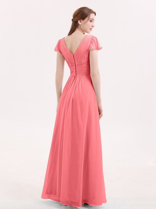 Babaroni JacquelineJacqueline Largo Gasa Vestido De Dama De Honor Con Mangas De La Tapa Sandía Tallas Grandes