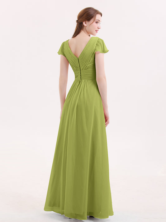 Babaroni JacquelineJacqueline Largo Gasa Vestido De Dama De Honor Con Mangas De La Tapa Verde Oliva Tallas Grandes
