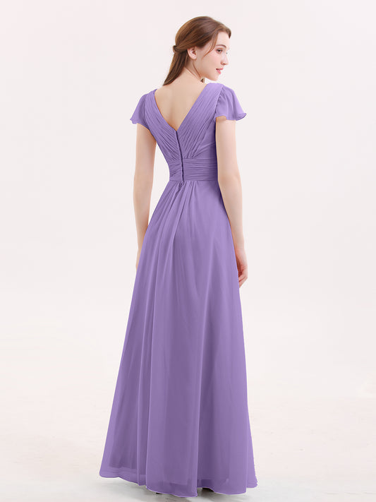 Babaroni JacquelineJacqueline Largo Gasa Vestido De Dama De Honor Con Mangas De La Tapa Trébol Tallas Grandes