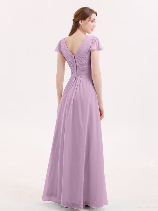 Babaroni JacquelineJacqueline Largo Gasa Vestido De Dama De Honor Con Mangas De La Tapa Wisteria