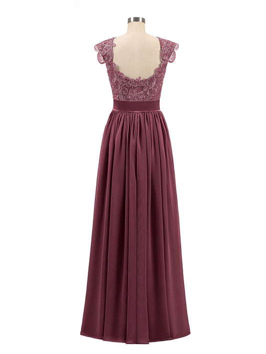 Babaroni JenniferJennifer Largo Gasa Vestido Con Encaje Corpino Aplicado Cabernet Tallas Grandes