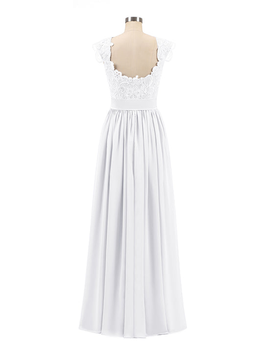 Babaroni JenniferJennifer Largo Gasa Vestido Con Encaje Corpino Aplicado Blanco Tallas Grandes