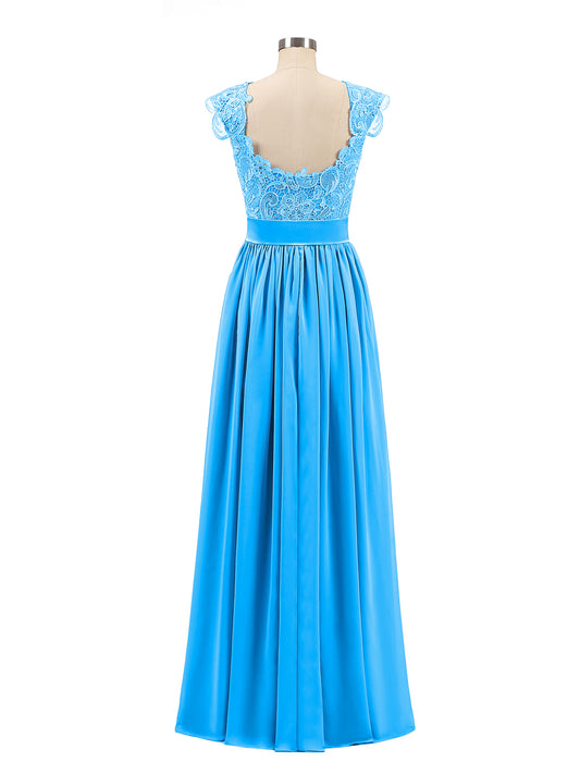 Babaroni JenniferJennifer Largo Gasa Vestido Con Encaje Corpino Aplicado Azul Royal Tallas Grandes