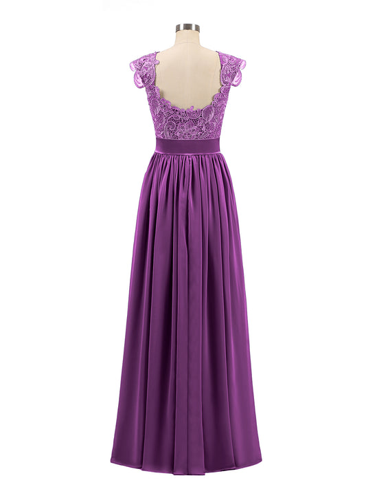 Babaroni JenniferJennifer Largo Gasa Vestido Con Encaje Corpino Aplicado Uva Tallas Grandes