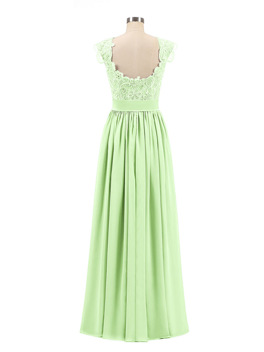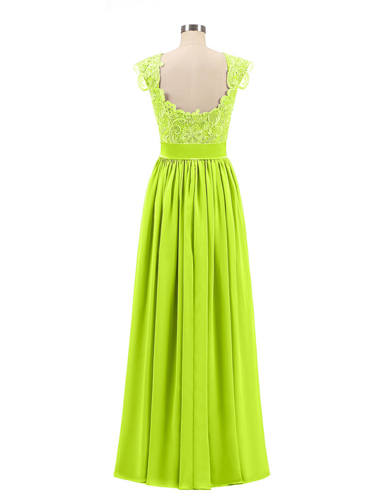 Babaroni JenniferJennifer Largo Gasa Vestido Con Encaje Corpino Aplicado Verde Lima Tallas Grandes