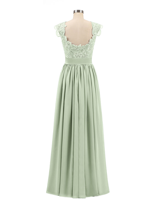 Babaroni JenniferJennifer Largo Gasa Vestido Con Encaje Corpino Aplicado Salvia Tallas Grandes