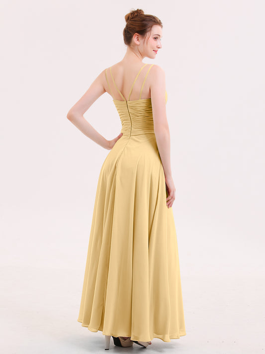 Babaroni JennyJenny Largo Vestidos De Dama De Honor Con Corpino Plisado Oro Tallas Grandes