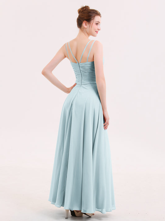 Babaroni JennyJenny Largo Vestidos De Dama De Honor Con Corpino Plisado Piscina
