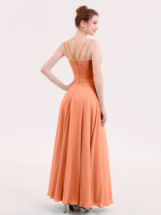 Babaroni JennyJenny Largo Vestidos De Dama De Honor Con Corpino Plisado Papaya