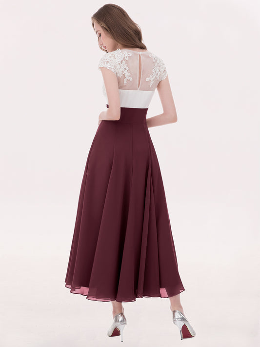 Babaroni AnemoneAnemone Escote En V Gasa Marfil Corpino Vestido Con Aplicacion Borgoña Tallas Grandes