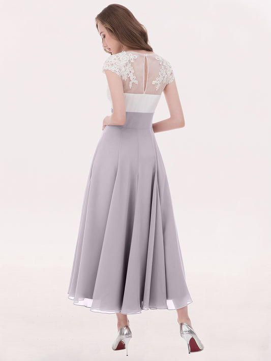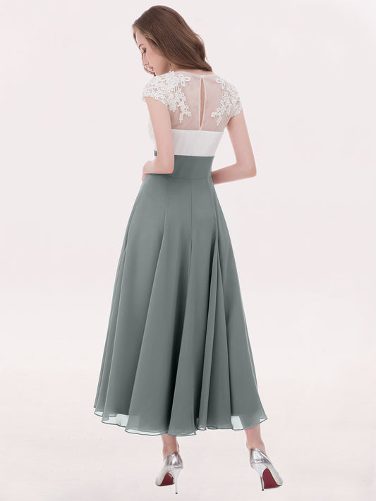 Babaroni AnemoneAnemone Escote En V Gasa Marfil Corpino Vestido Con Aplicacion Gris Acero Tallas Grandes