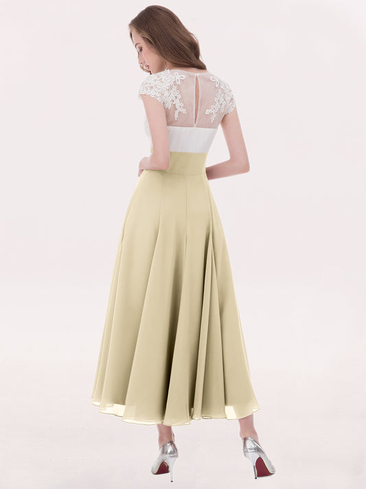 Babaroni AnemoneAnemone Escote En V Gasa Marfil Corpino Vestido Con Aplicacion Champán Tallas Grandes