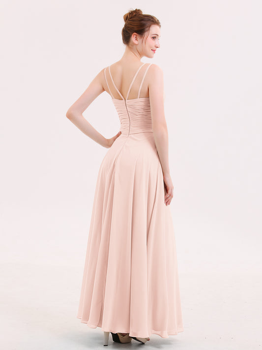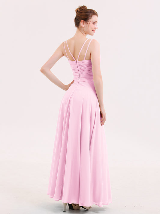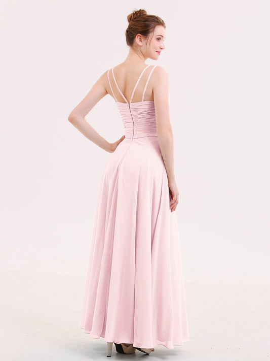 Babaroni JennyJenny Largo Vestidos De Dama De Honor Con Corpino Plisado Rosa Claro