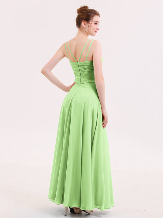 Babaroni JennyJenny Largo Vestidos De Dama De Honor Con Corpino Plisado Salvia
