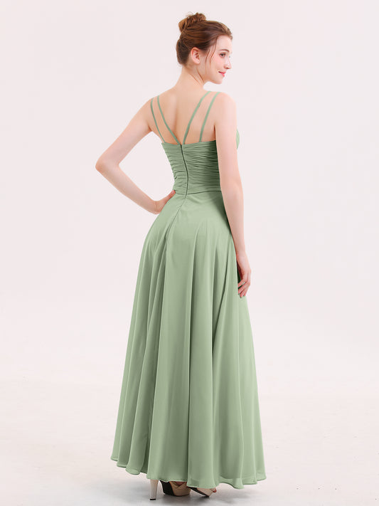Babaroni JennyJenny Largo Vestidos De Dama De Honor Con Corpino Plisado Salvia Polvorienta Tallas Grandes