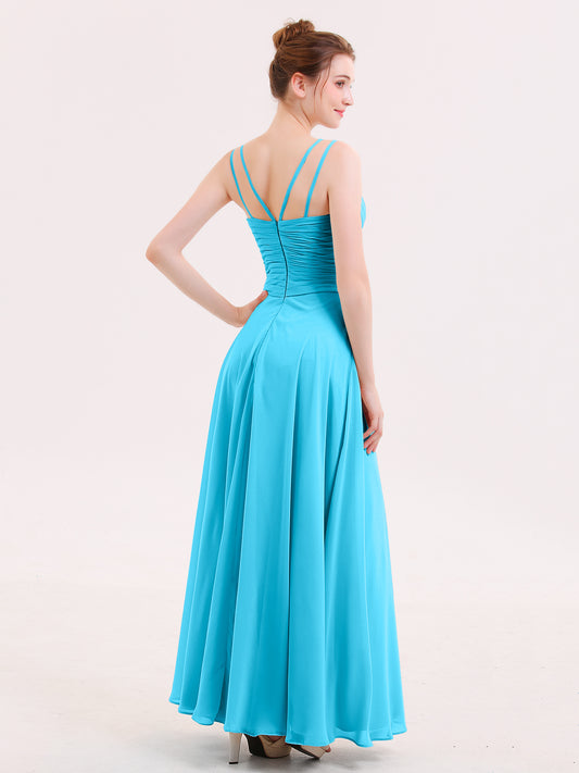 Babaroni JennyJenny Largo Vestidos De Dama De Honor Con Corpino Plisado Tahití